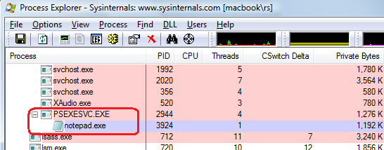 Ele instala um serviço na máquina remota, e esse serviço cria os processos e redireciona o input/output: